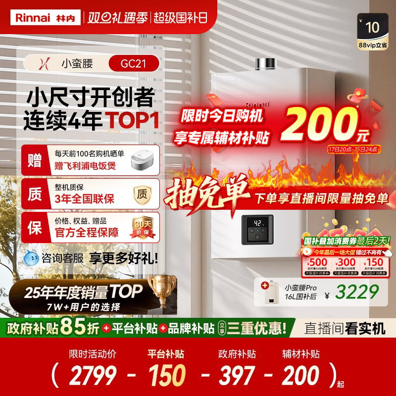[小蛮腰恒温]林内燃气热水器家用天然气13升16升GC21同款