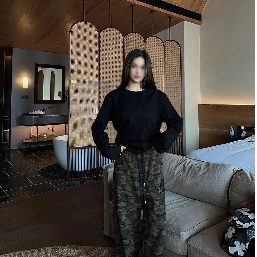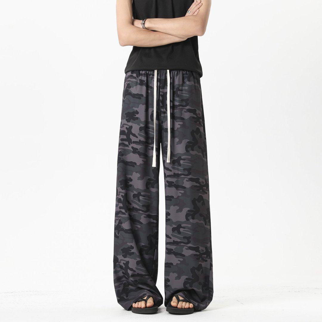 NECOYEP 美式复古抽绳阔腿迷彩裤男女宽松休闲潮流百搭直筒长裤