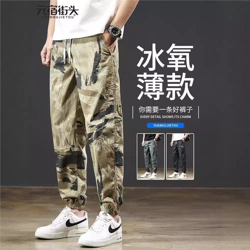 冰丝迷彩休闲裤男士夏季薄款2025新款长裤运动九分速干裤子男