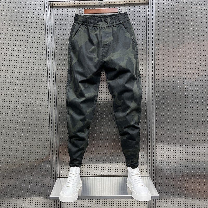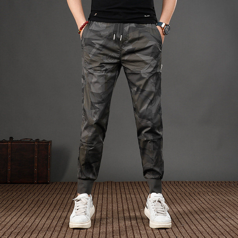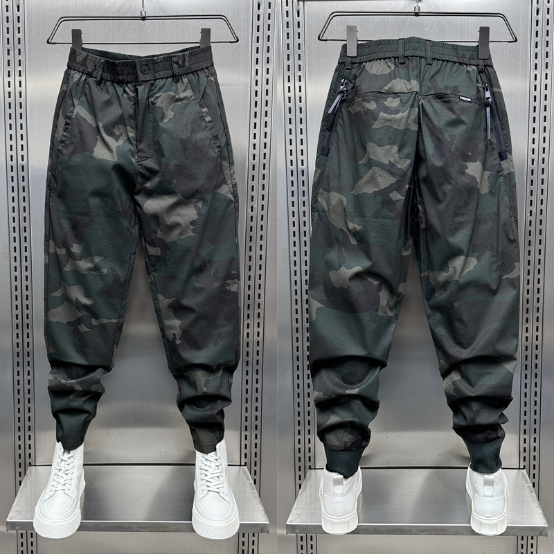 2025夏季薄款迷彩休闲裤男潮流百搭修身束脚裤系绳松紧腰裤子薄款