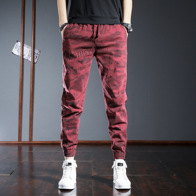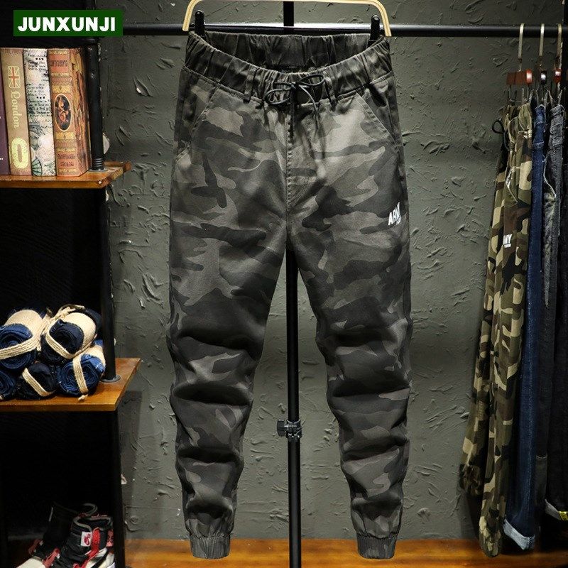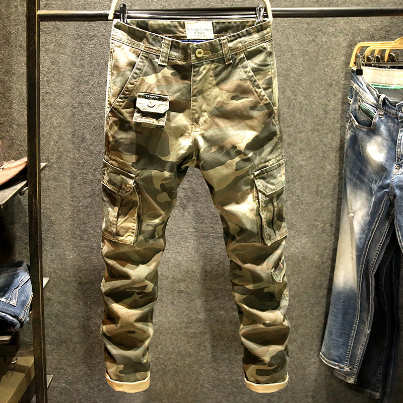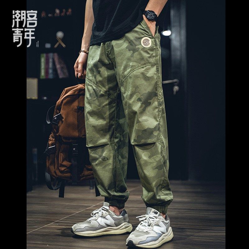 潮牌秋季新款百搭迷彩休闲裤男网红休闲小脚九分裤工装直筒束脚裤