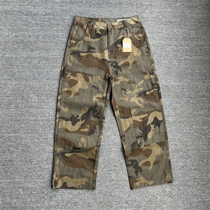vintage美式复古户外工装多口袋迷彩休闲裤男 宽松阔腿直筒长裤男