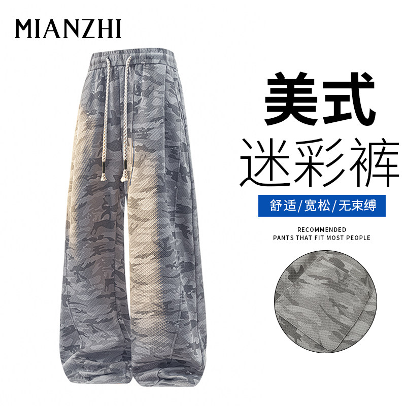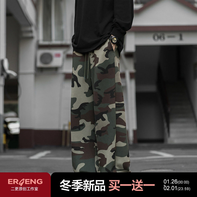 二更重磅美式迷彩休闲裤男春季2026新款户外潮流宽松直筒男生长裤