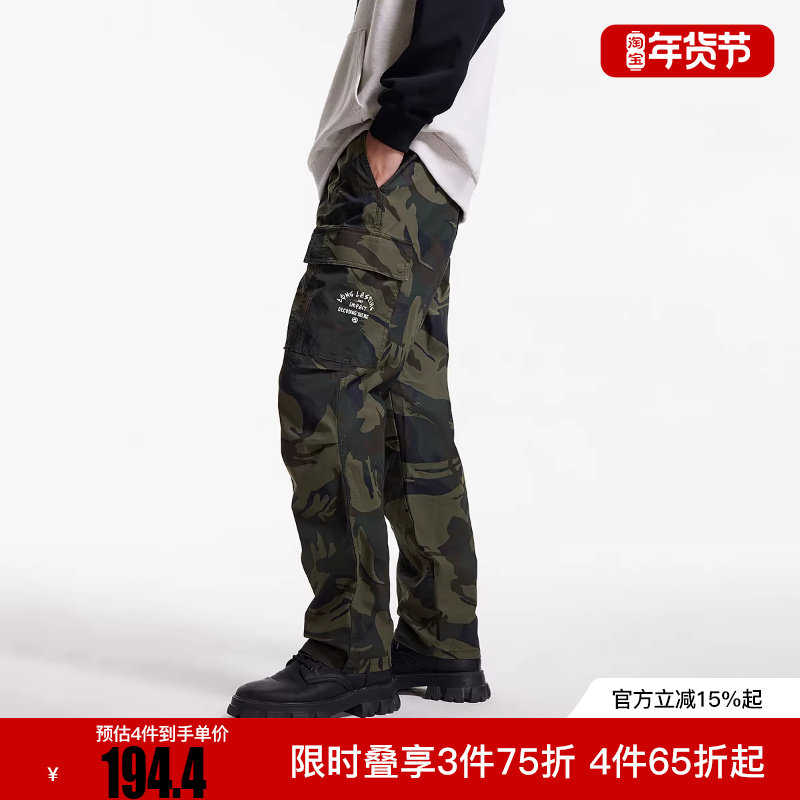 美式复古伐木迷彩休闲裤男装 春秋宽松直筒水洗做旧高街潮工装裤