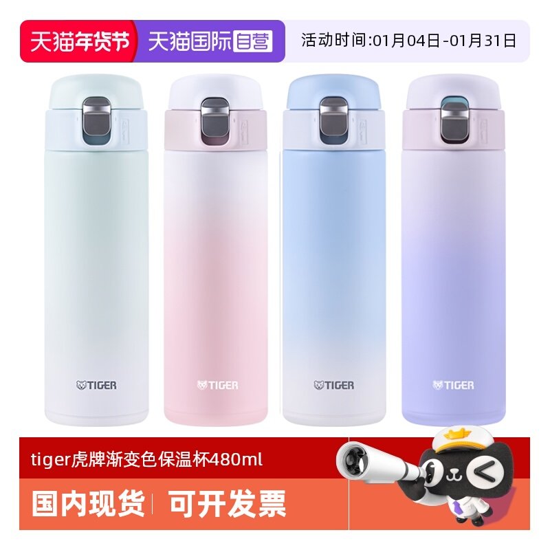 tiger虎牌梦幻渐变色保温杯便携弹盖小清新男生女士水杯杯子480ml