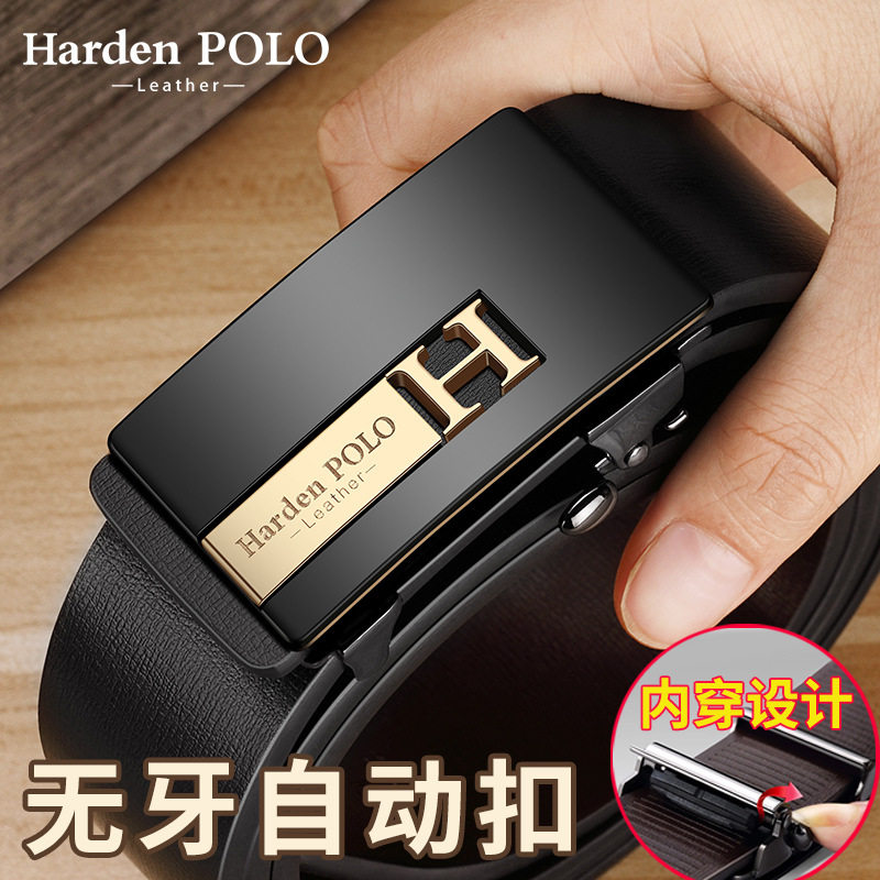 啄木鸟男士皮带无牙内穿自动扣年轻人潮流牛皮男款商务裤腰带真皮