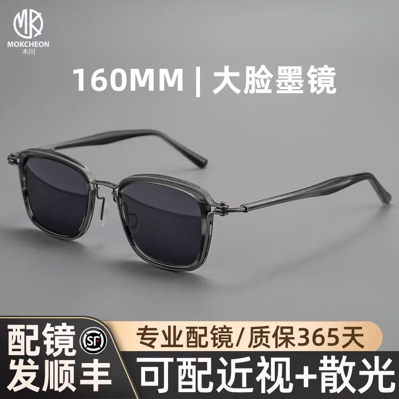 木川160mm大脸近视墨镜男士复古偏光纯钛镜架可配度数防晒太阳镜