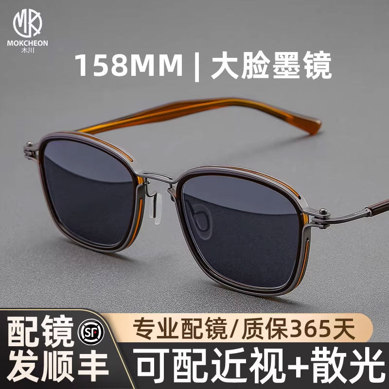 木川158mm近视墨镜男款纯钛复古大脸驾驶开车偏光太阳镜可配度数
