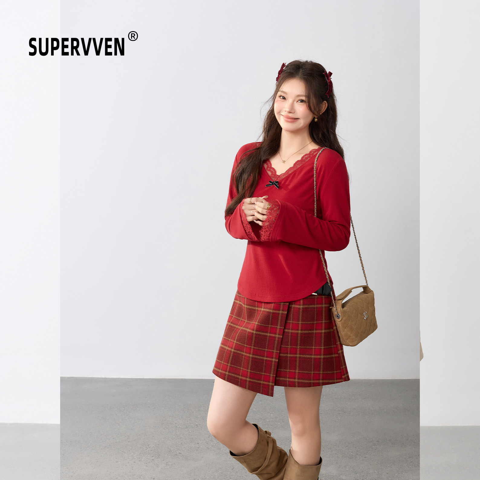 - 红色雪纺衫女