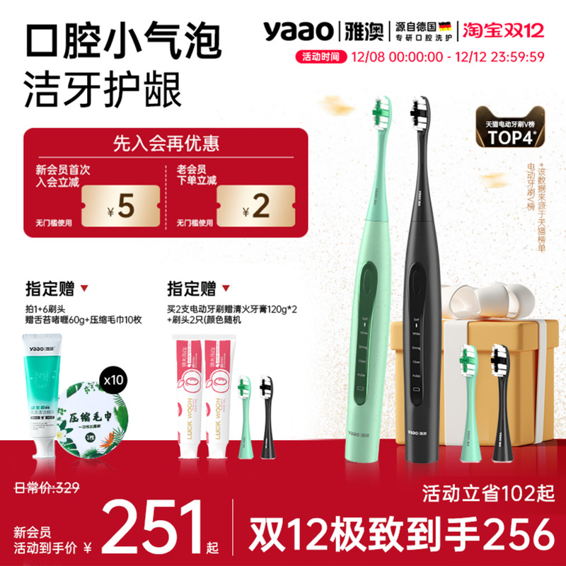 德国雅澳F8电动牙刷成人男女款情侣套装全自动智能声波礼物礼盒装