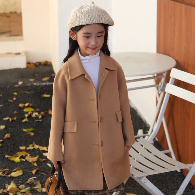 儿童双面羊绒大衣男女童中长款毛呢外套中大童全羊毛呢子洋气童装