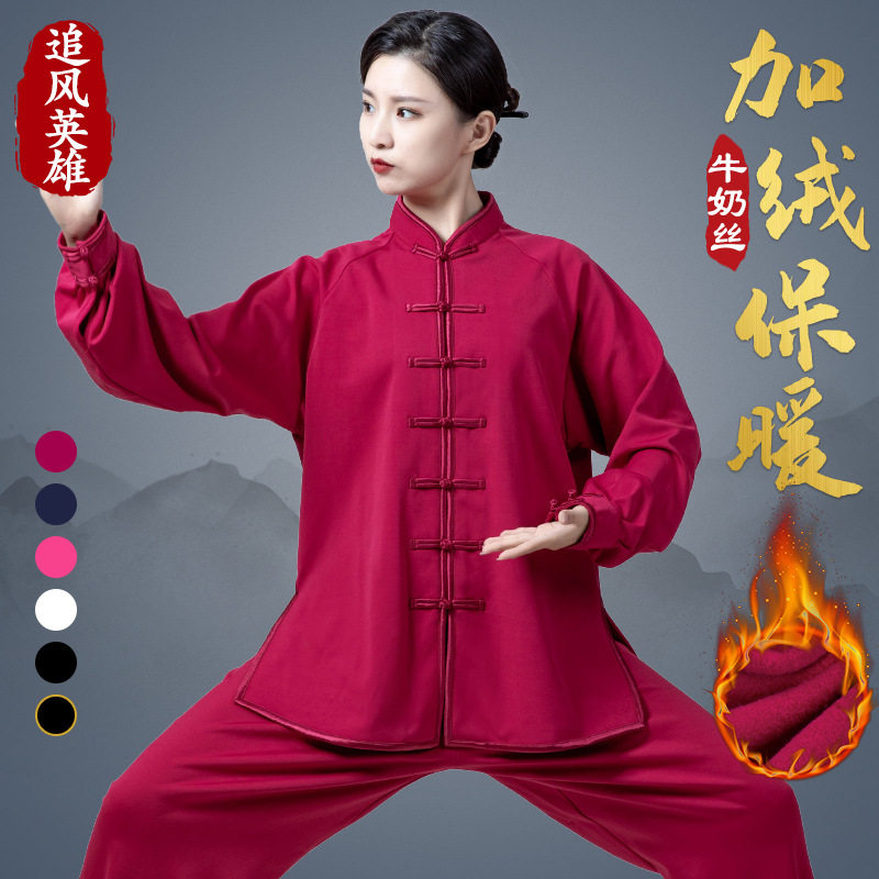 秋冬季太极服女2025新款加绒加厚牛奶丝武术太极拳八段锦练功服男