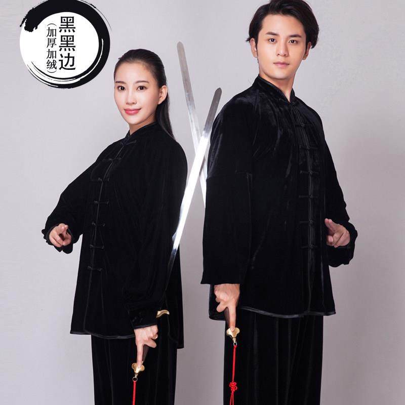 金丝绒太极服男秋冬季加绒加厚太极拳练功夫女武术表演比赛太极服