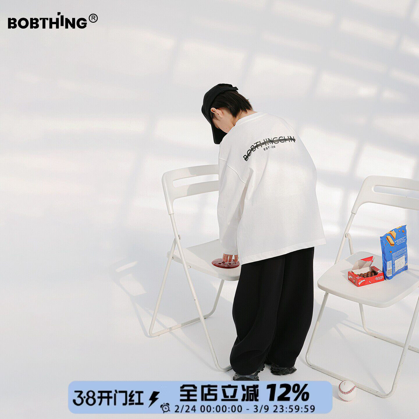 男童春装2026新款儿童设计logo白T恤中大童百搭针织长袖打底衫潮