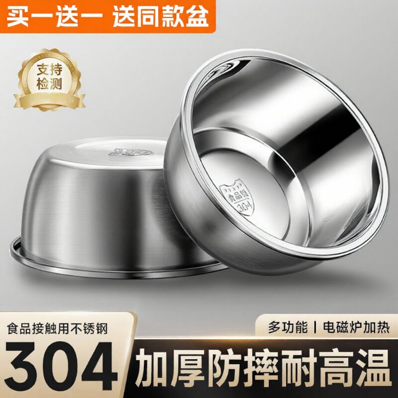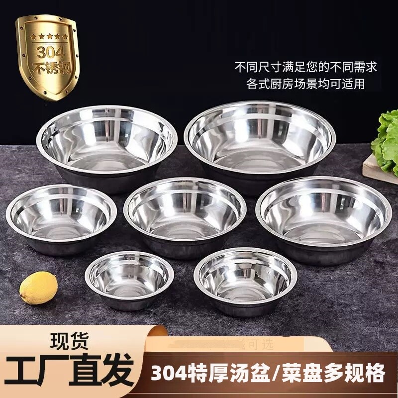 不锈钢盆加厚304盆食堂汤碗家用菜盆泡面碗饭碗盆汤盆烘焙打蛋盆