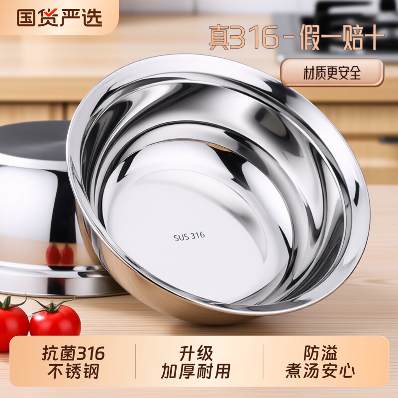 国风不锈钢盆316食品级加厚盆子大汤碗厨房家用洗菜盆备菜盆汤盆