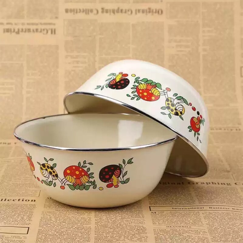 加厚搪瓷碗不锈钢包边汤碗搪瓷饭盆汤盆搅拌碗冰箱保鲜碗带盖菜碗