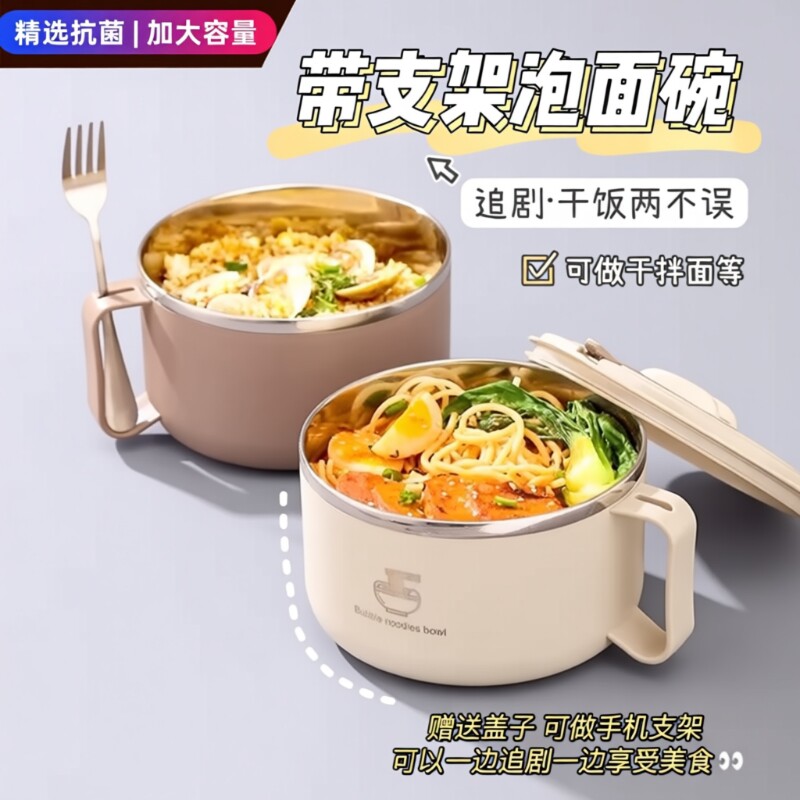 泡面碗宿舍学生带盖不锈钢泡方便面可沥水汤盆碗食堂打饭专用神器