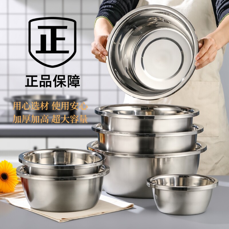 304食品级不锈钢盆加厚汤盆面盆家用厨房打蛋和面盆洗菜多用面盆