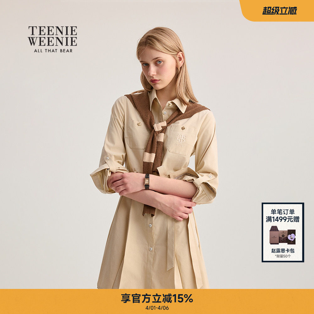 TeenieWeenie小熊连衣裙春秋文艺风学院风时尚气质披肩休闲衬衫裙
