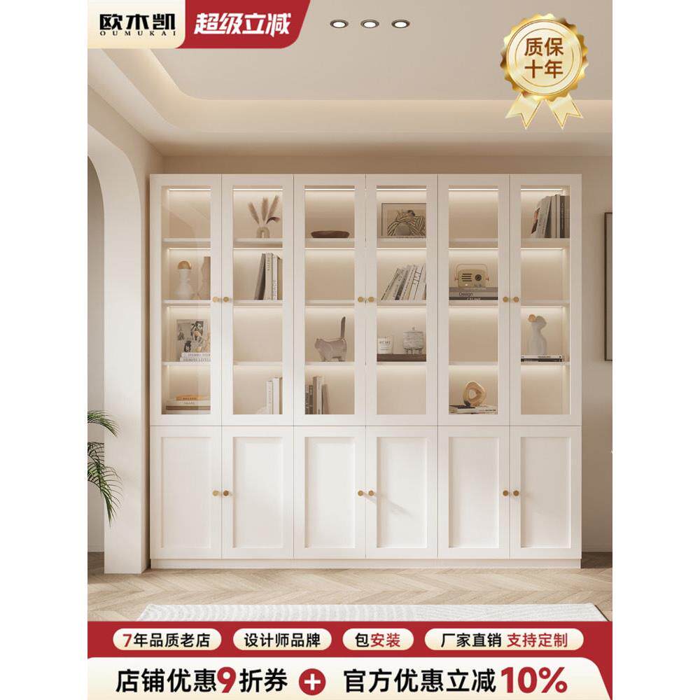 轻奢书柜组合客厅k落地美式实木儿童储物书书橱收纳白色书架带玻