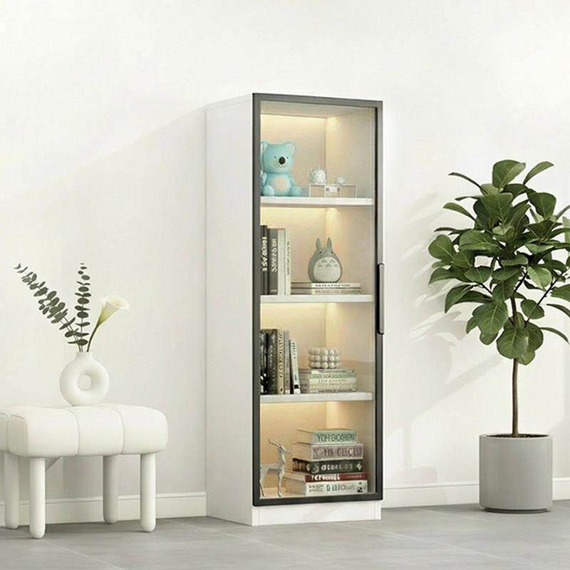 家实书柜书用客厅靠墙一体白色书架置物边柜电视旁边储物架玻璃门