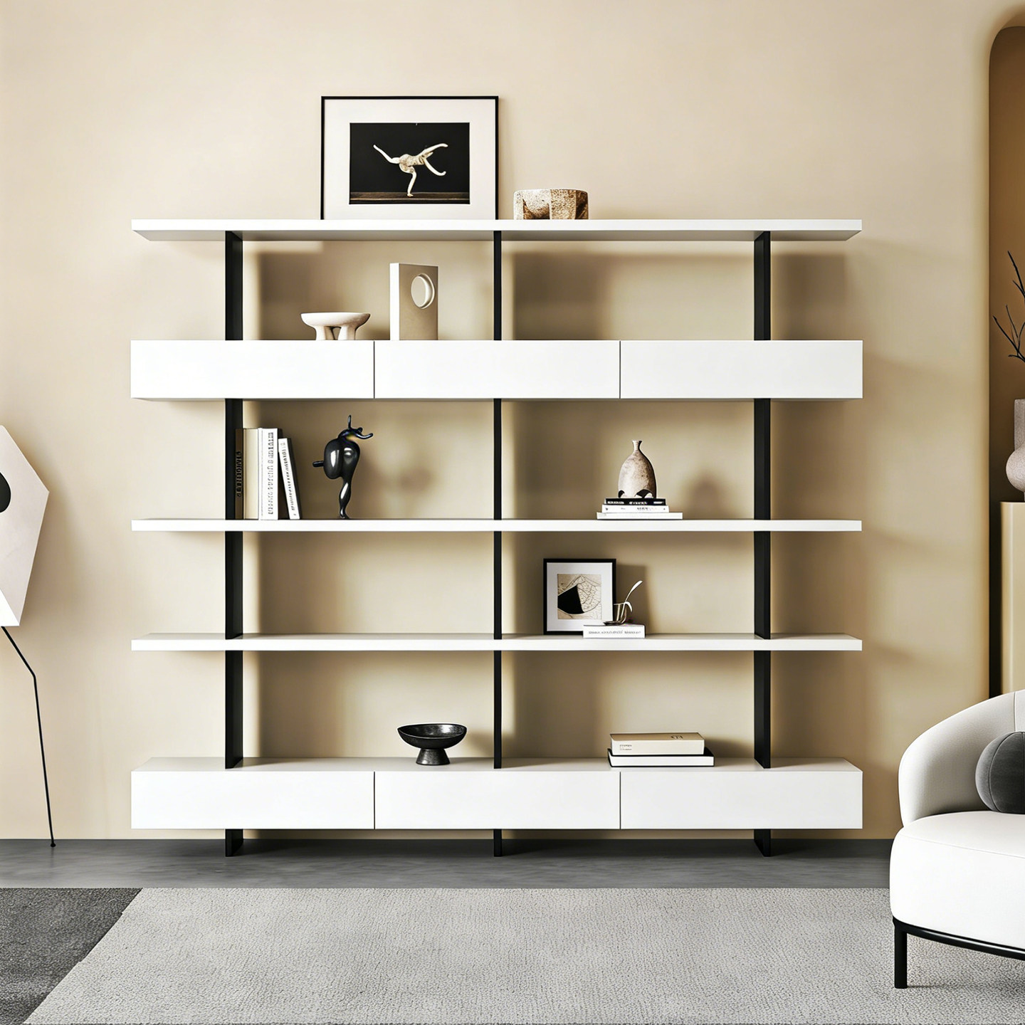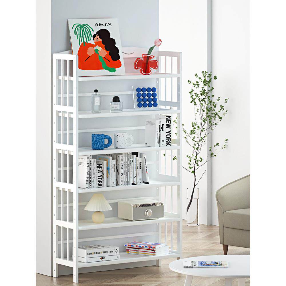 现代简约白色书架落地式置物架客厅卧室收纳储物架多层书柜装饰架