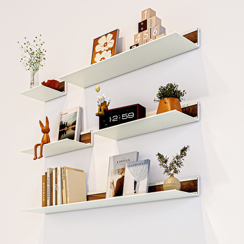 铝合金墙上一字板置物架墙面壁挂展示架奶油风白色书架搁板收纳架