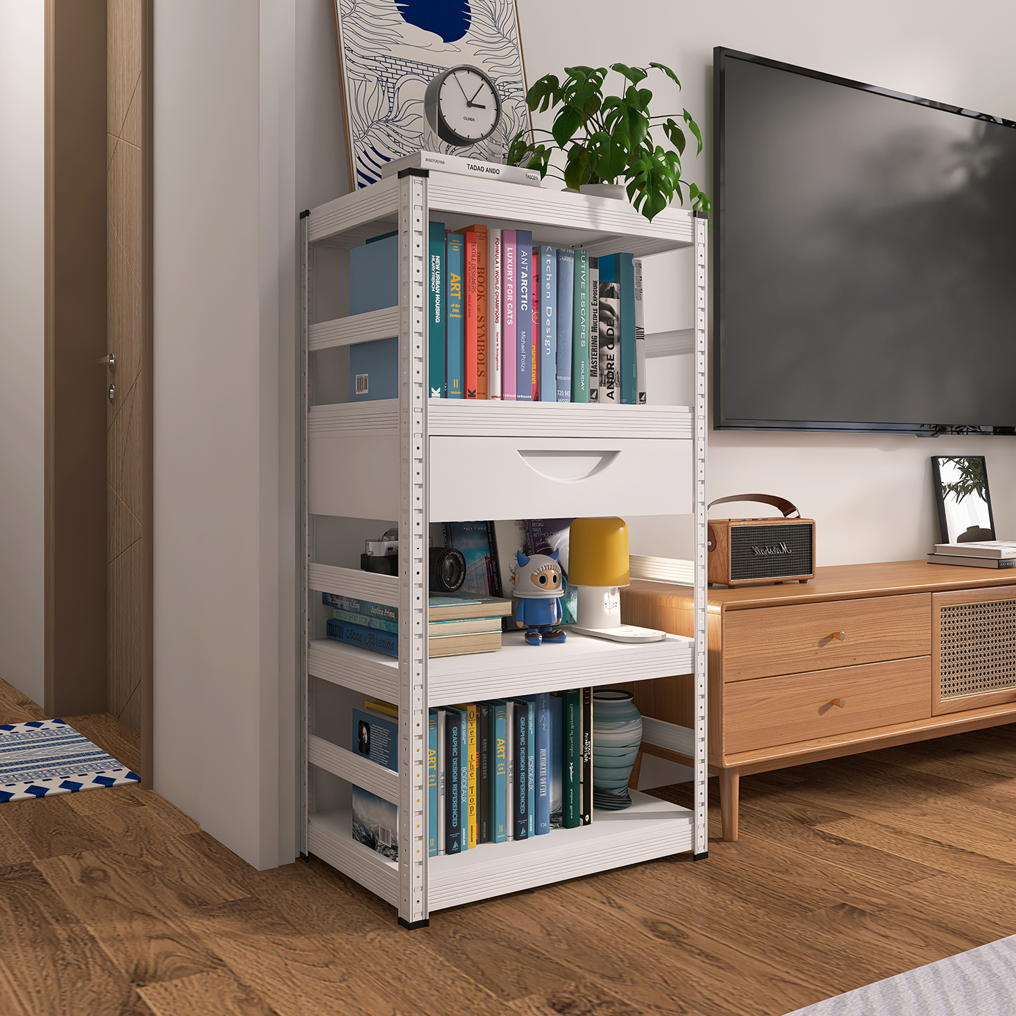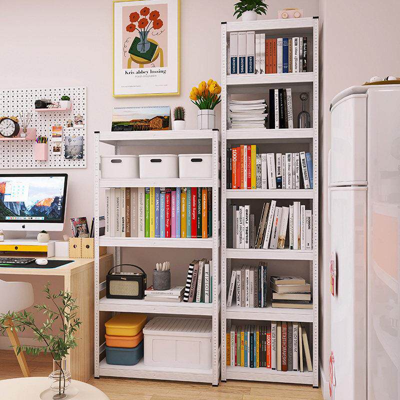 峰阳简约白色书架置物架落地多层家用钢制客厅靠墙铁艺收纳架子a1