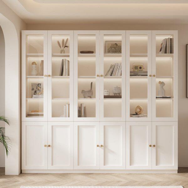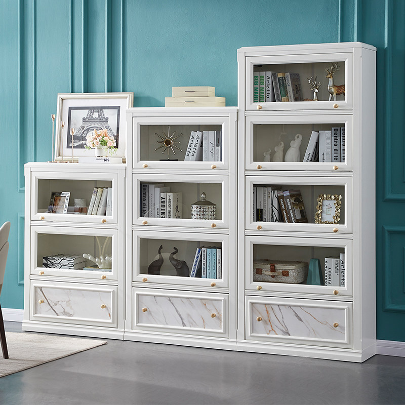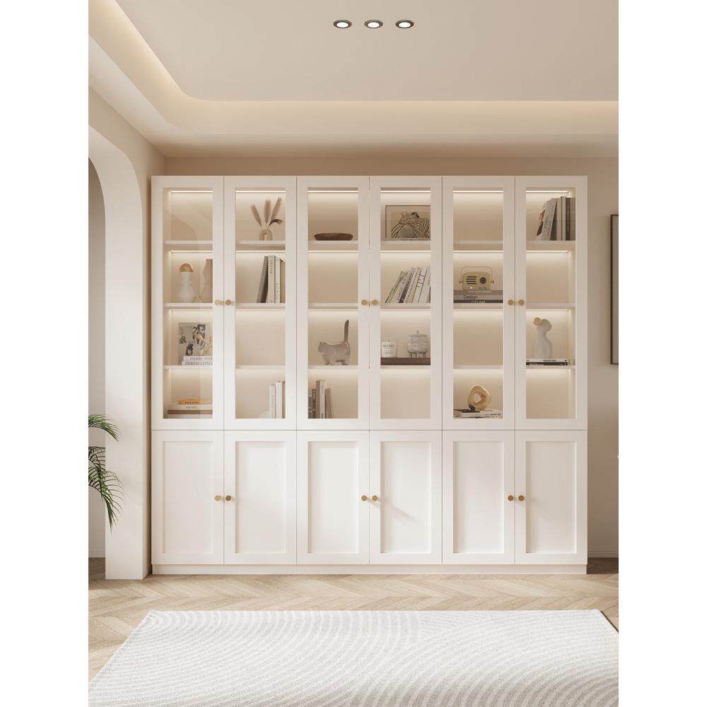 书柜实木储物柜收纳柜玻璃门法式家用防尘展示柜客厅白色书架柜子