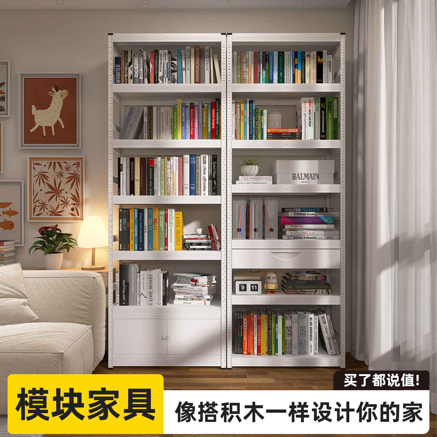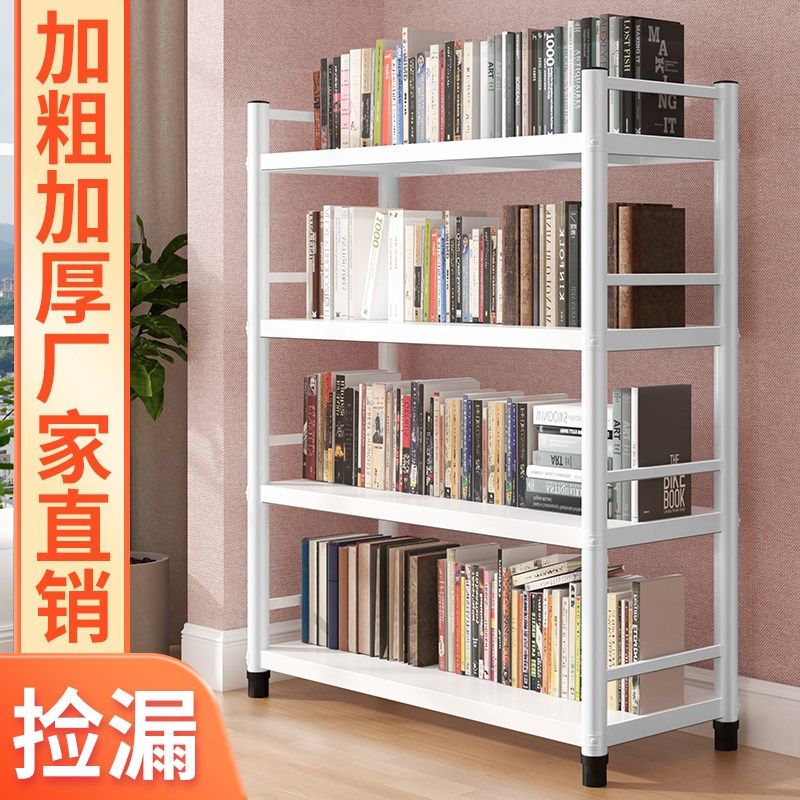 抖白色书架家用铁艺落地钢制货架置物架书本收纳架图书馆客厅书柜