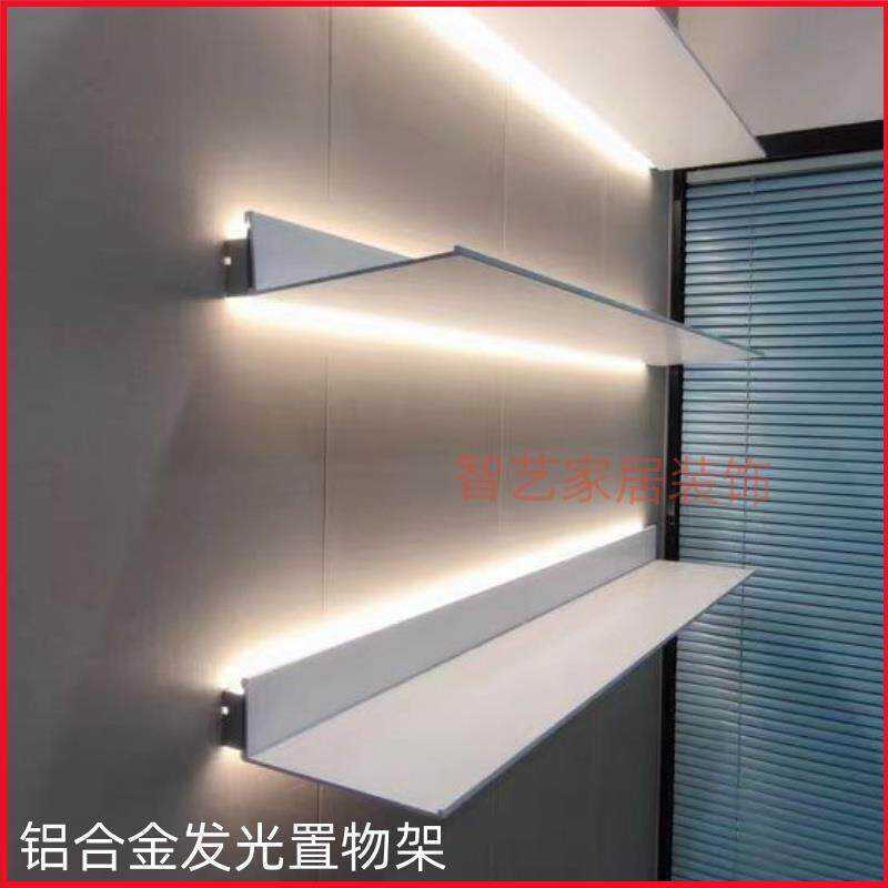 铝合金置物架内置发光LED带灯层板挂墙上金属置物板简约白色书架