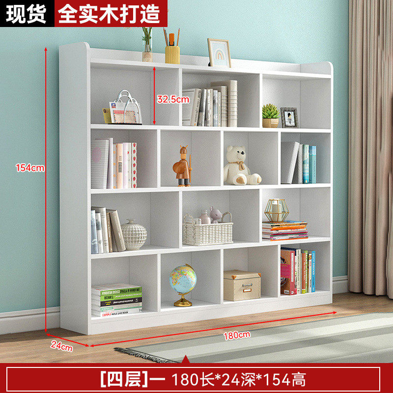 A8L白色书架实木儿童落地简约书柜自由组合格子柜学生教室矮柜置