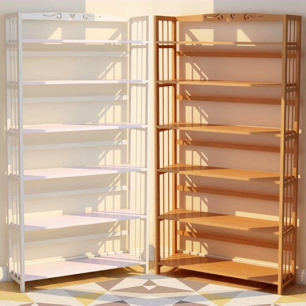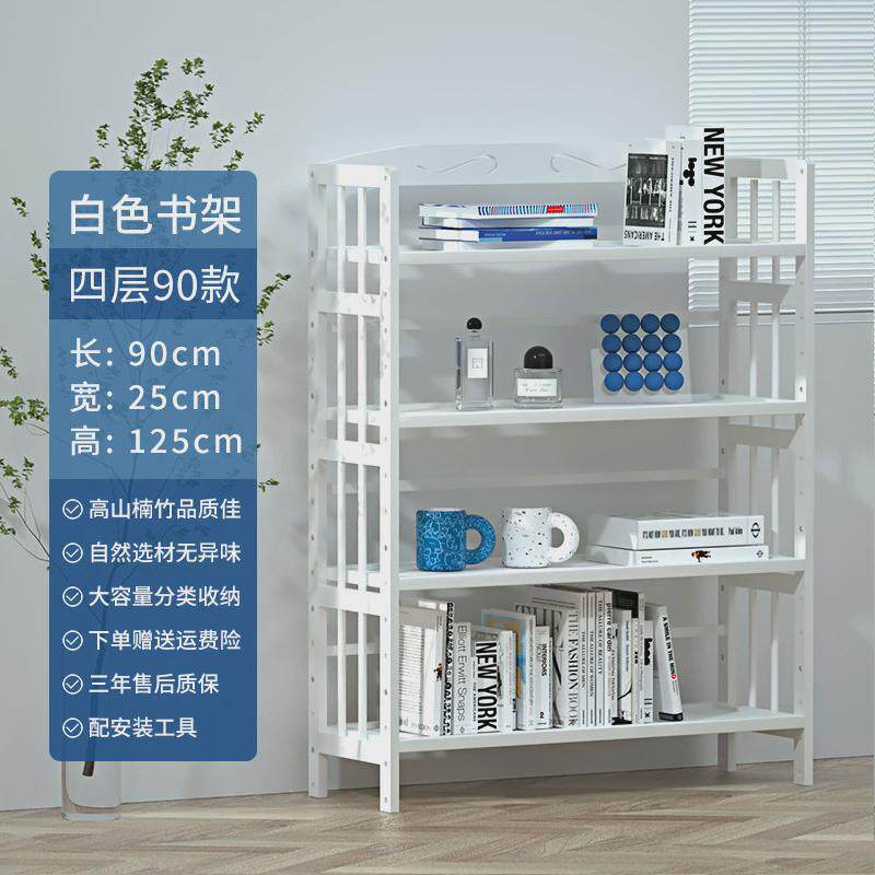 白色书架置物架多层落地家用楠竹收纳层架儿童学生书柜整理置物架