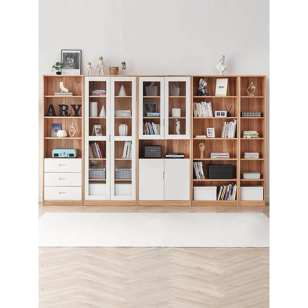 北欧实木书柜落地带玻璃门组合客厅白色书架置物柜满墙展示柜防尘