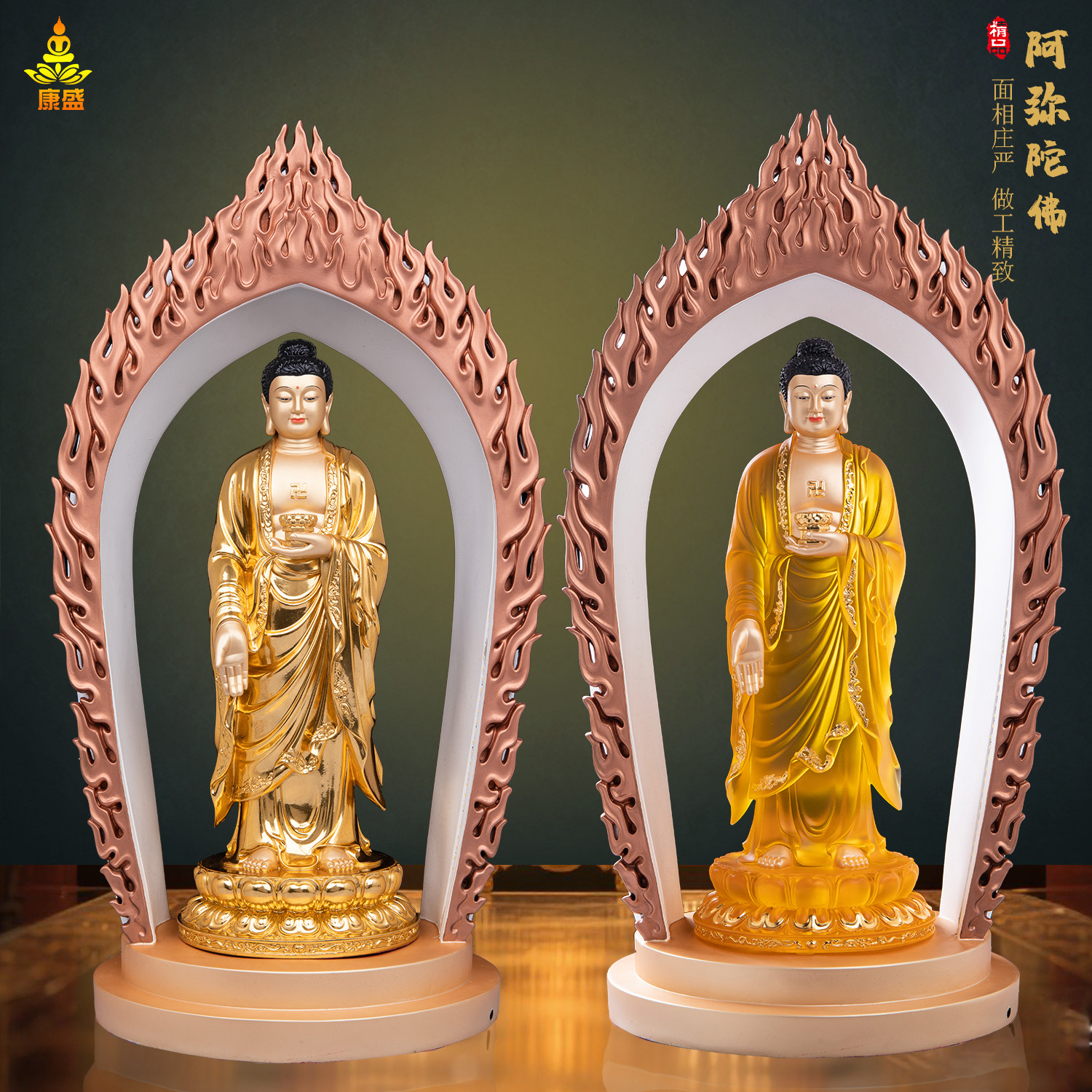 阿弥陀佛站像东林寺大佛像家用礼佛摆件树脂水琉璃阿弥陀佛接引像