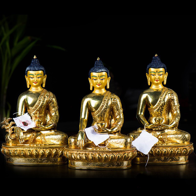 纯铜贴金释迦牟尼佛像家用供奉三宝佛三世佛阿弥陀佛药师佛铜摆件