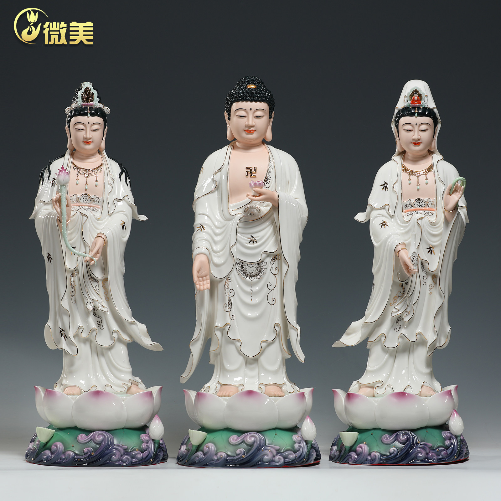 微美陶瓷立水莲西方三圣佛像观音阿弥陀佛大势至菩萨客厅供奉摆件