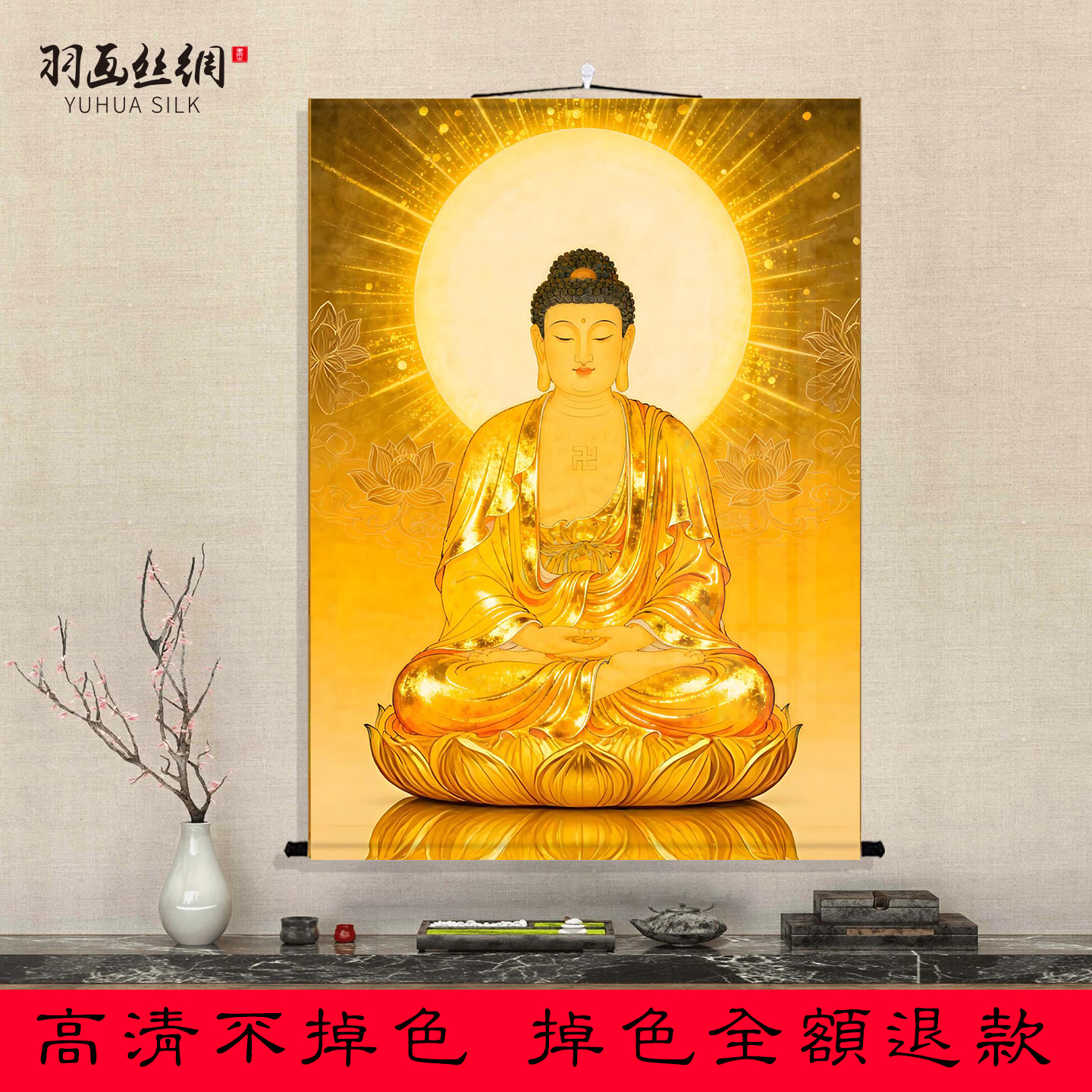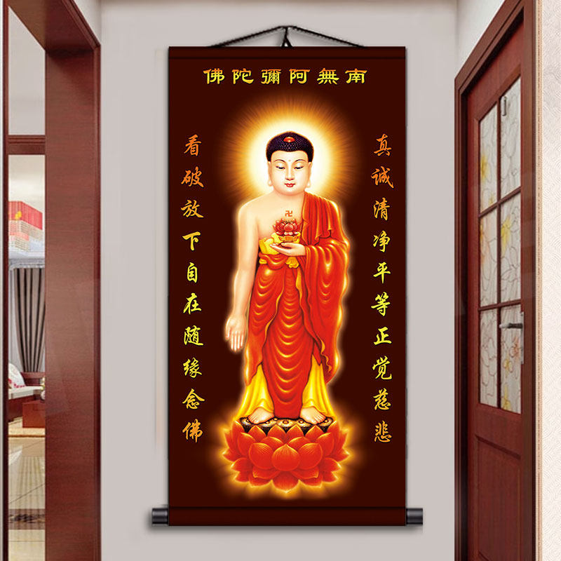 佛像挂画南无阿弥陀佛画像供奉国画释迦牟尼画佛西方三圣卷轴观音