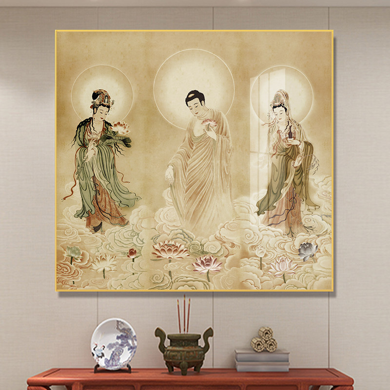 西方三圣佛像装饰画阿弥陀佛观音菩萨画像挂画客厅中堂背景墙壁画