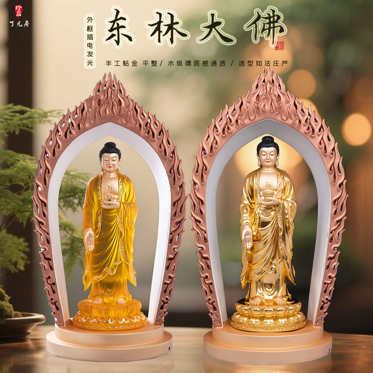 阿弥陀佛 进口镀金佛像摆件日本大师手作书房桌面保平安祝福寺庙