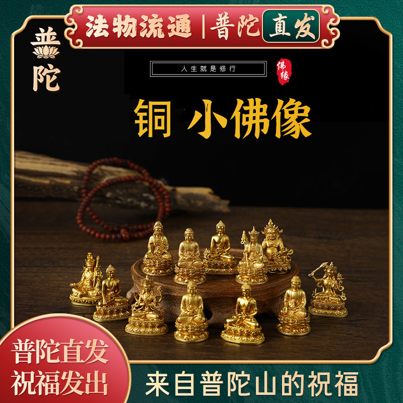 【普陀山正品】黄铜随身佛像阿弥陀佛观音文殊地藏黄财神供奉摆件