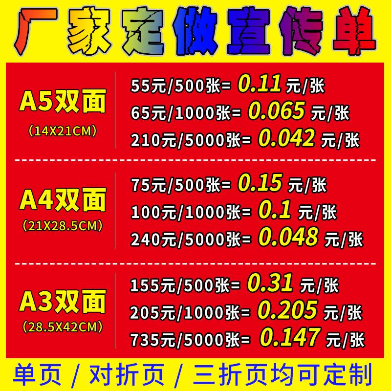 宣传单印制传单印刷宣传页打印单页定制折页双面彩页广告设计制作dma4a5彩印铜版纸开业产品册画册招生餐饮