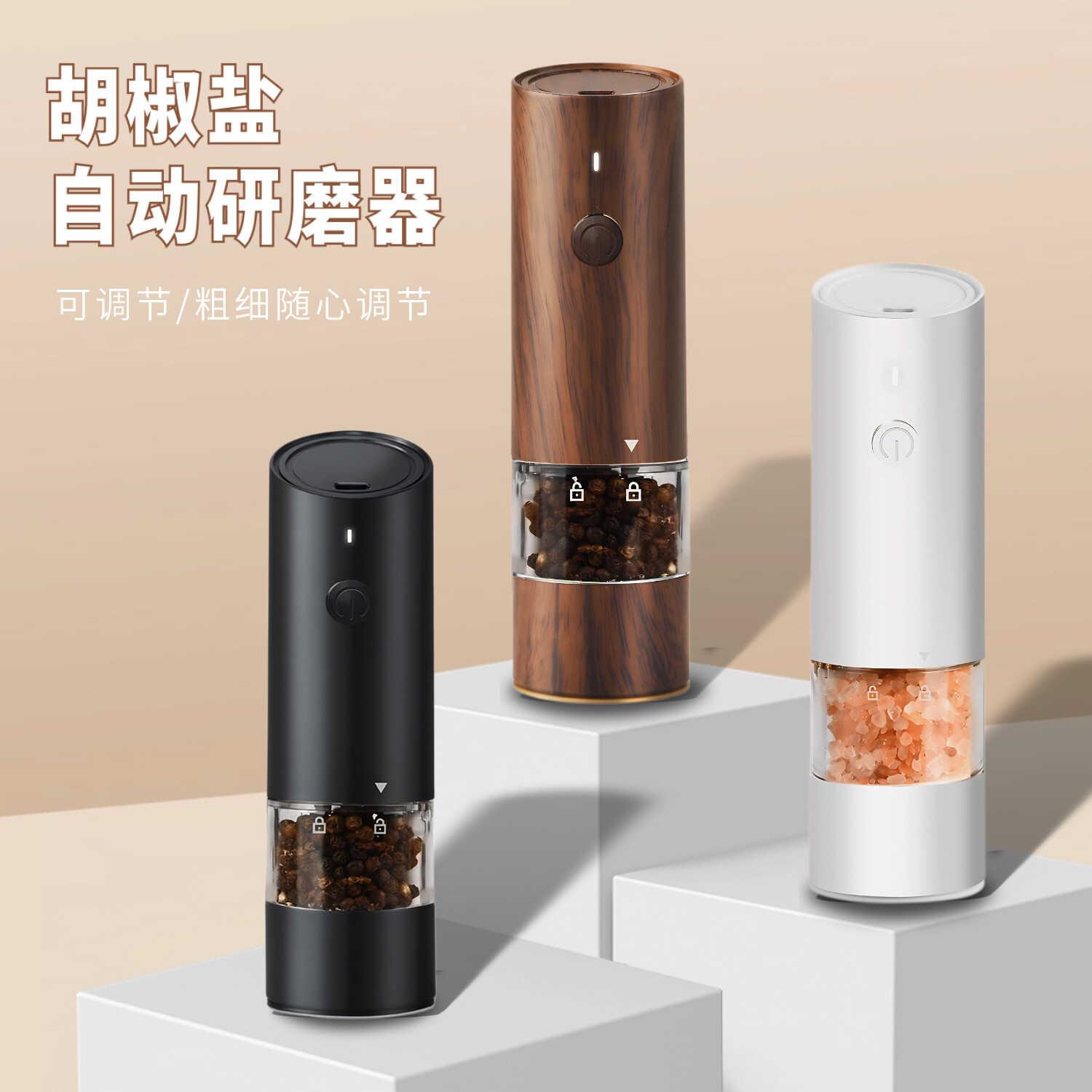 电动胡椒研磨器黑胡椒粉花椒海盐粗细调节家用重力感应自动调味瓶