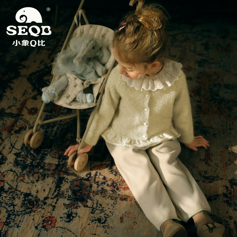 【SEQB小象Q比】女童荷叶边领针织衫甜美花朵图案毛衣两件套套装