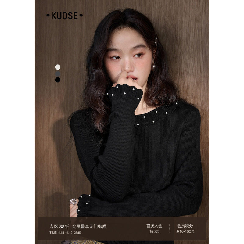 木耳边打底衫女春秋内搭修身毛衣2026年新款洋气春秋针织长袖上衣
