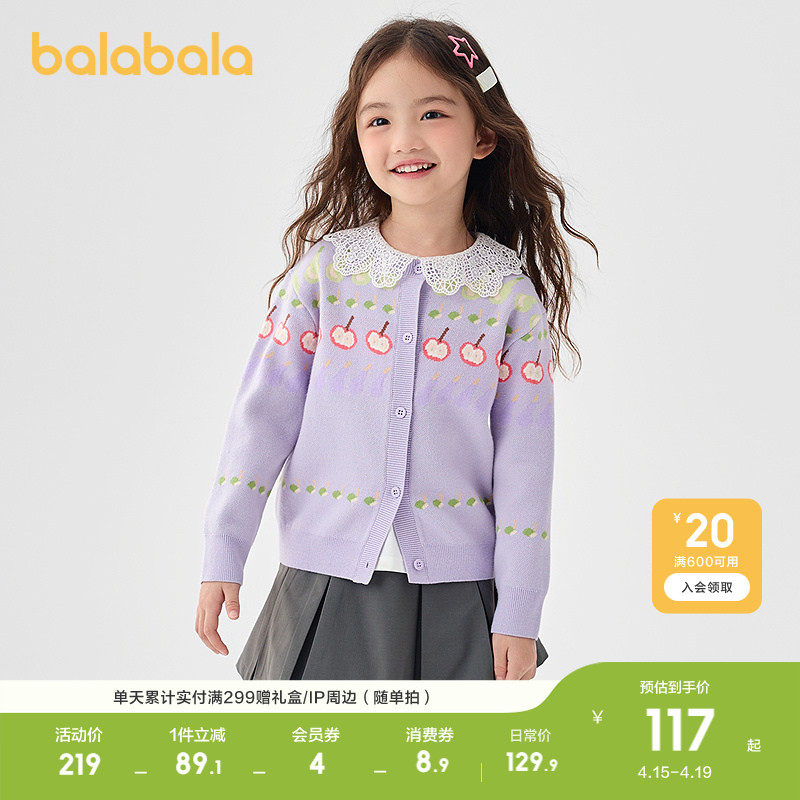 巴拉巴拉童装儿童毛衫女童春装荷叶边小翻领绣花针织开衫甜美时尚