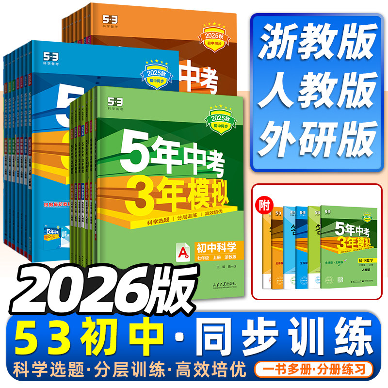 浙江专版2026新版五年中考三年模拟七年级上册八年级下册九年级语文数学英语科学浙教版5年中考3年模拟初中必刷题同步练习册53中考
