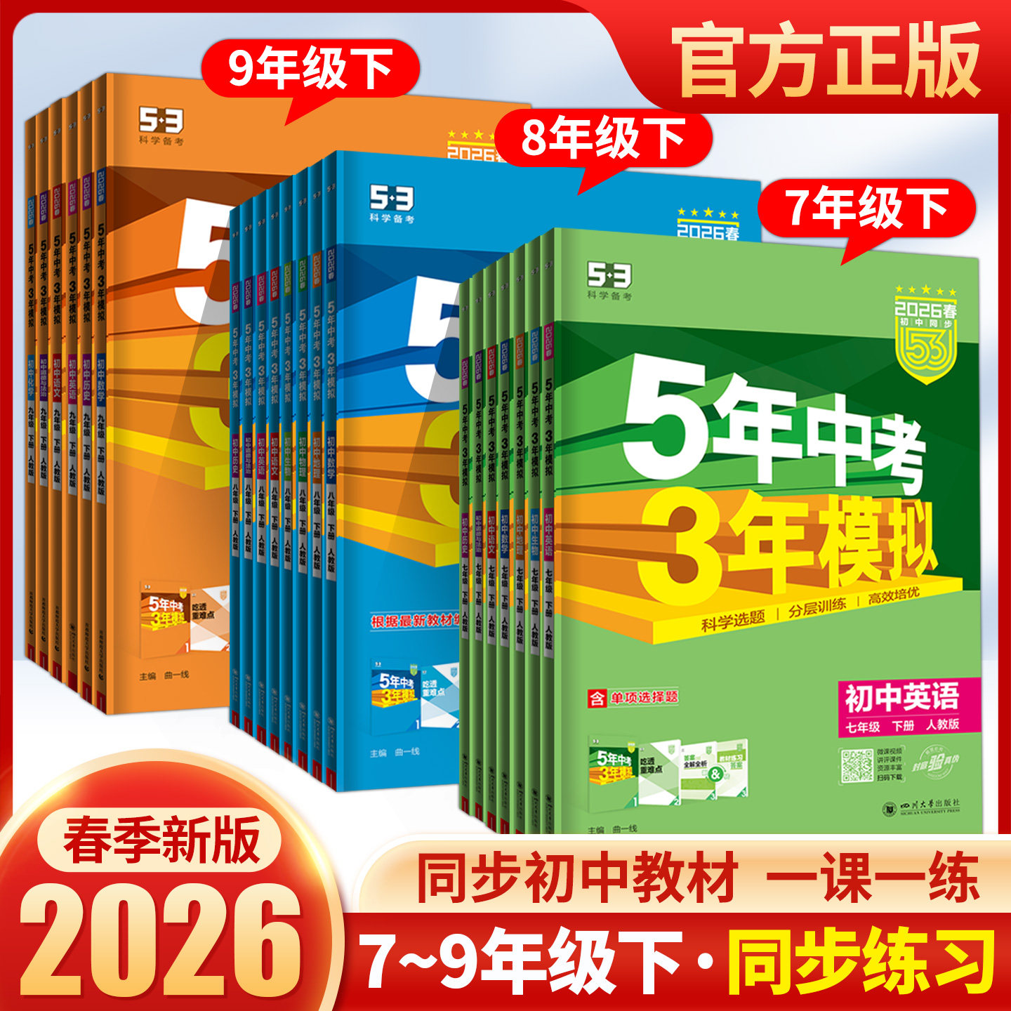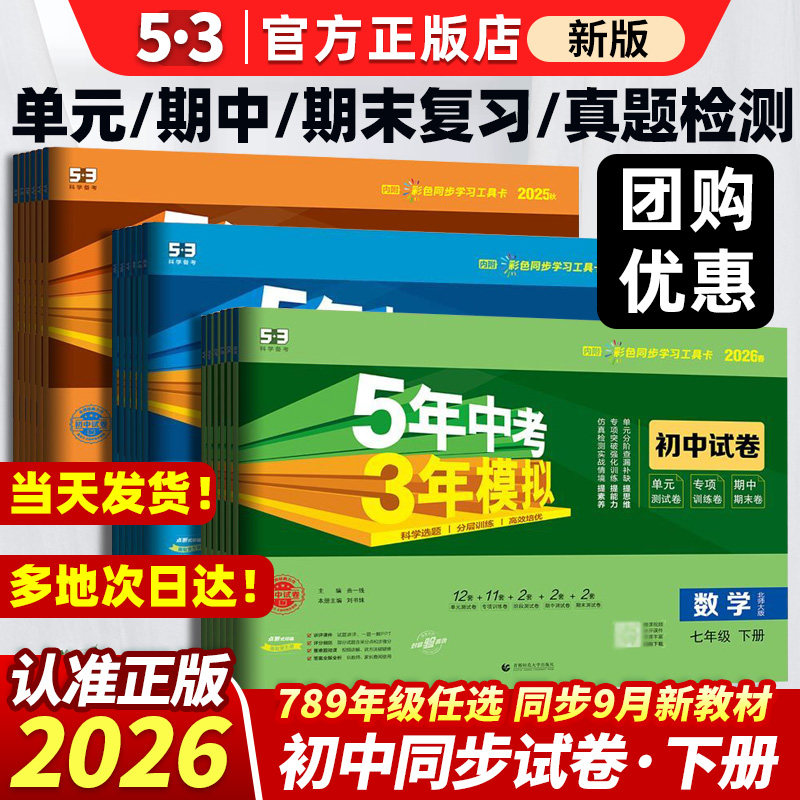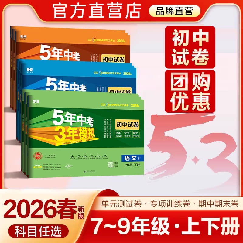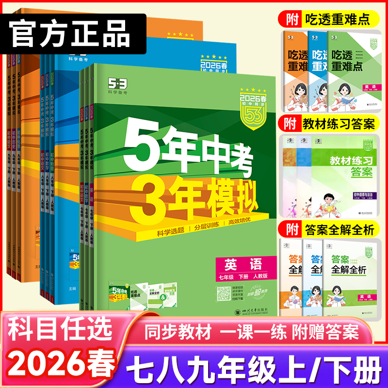 2026春53五年中考三年模拟七年级下册八九年级下册上册语文数学英语物理地理历史人教5年中考3年模拟53天天练初中同步练习册必刷题
