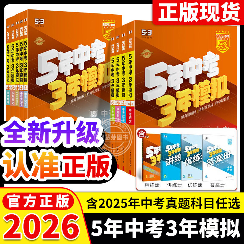 2026版五年中考三年模拟总复习5年中考3年模拟九年级语文数学英语生物地理物化政史会考真题卷全套必刷题53专项练习初三复习资料